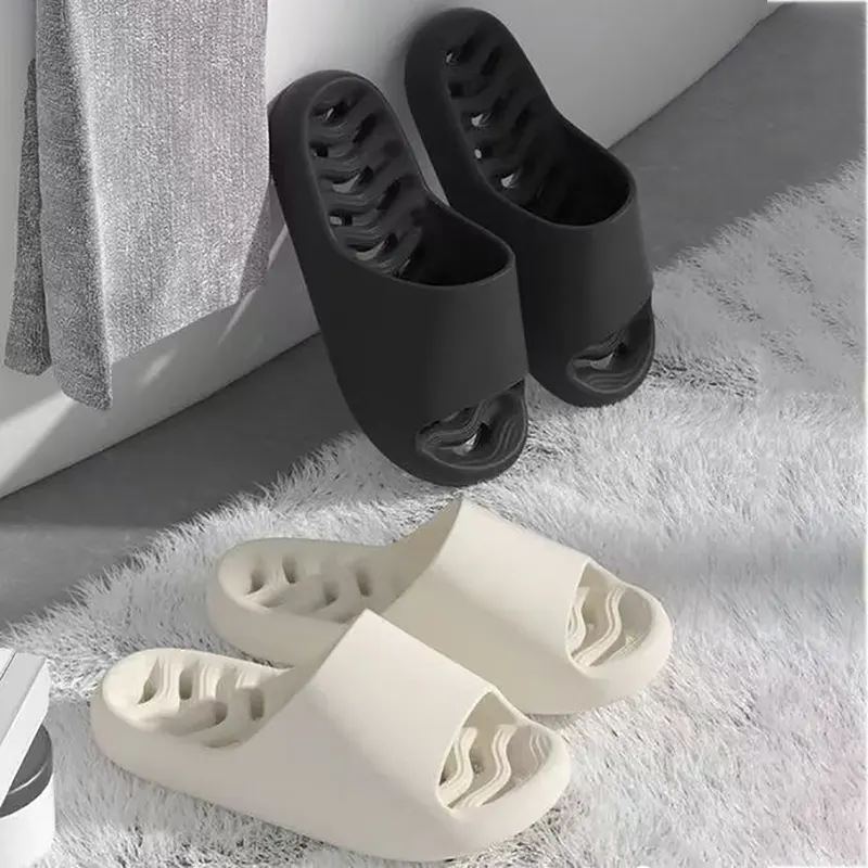 Nossas sandálias ocas de secagem rápida são frias e respiráveis, macias e confortáveis. O projeto do orifício de vazamento de água, o piso é oco e seco rápido sem acumulação de água, e a respirabilidade é mais refrescante. A suavidade é visível. Quando você voltar para casa, coloque sandálias macias para aliviar a pressão dos pés e relaxar após um dia de fadiga. A sola não deslizante é estável e estável, com suporte estável e sem escorregar. Você não tem medo de pisos molhados e escorregadios, e pode entrar e sair do banheiro com mais confiança.