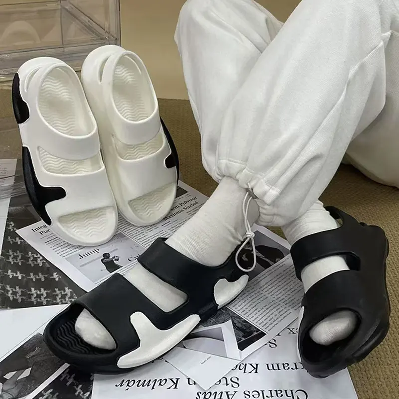 Nossas sandálias de casais que aprimoram a altura de sola espessa têm uma entressola elástica de cerca de 3 cm espessada, o que traz uma sensação confortável aos pés enquanto modifica a forma da perna para torná-la esbelta e pequena. A textura geométrica aprofundada tem uma forte estrutura estável e não é fácil de escorregar ao pisar na água. Utilizamos a tecnologia de moldagem e espuma de injeção, moldagem de uma peça e não é fácil se deformar após o desgaste a longo prazo.